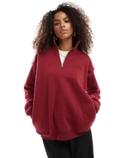 Cotton:On Classic Fleece Oversized Half Zip Sweatshirt In Red For Women