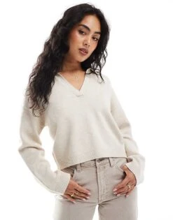 Cotton:On Cotton On Knitted V Neck Polo Sweater In Stone For Women