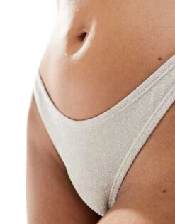 Cotton:On Cotton On High Side Brazillian Bikini Bottom In Metallic For Women Misty Cloud Metallic