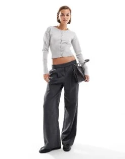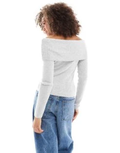 Cotton:On Cotton On Everfine Rib Off Shoulder Crop Knit Jumper In Grey For Women Grey Marle