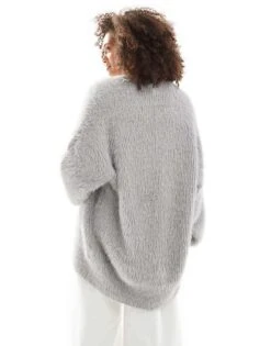 Cotton:On Cotton On Faux Hair Longline Cardigan In Arctic Grey For Women